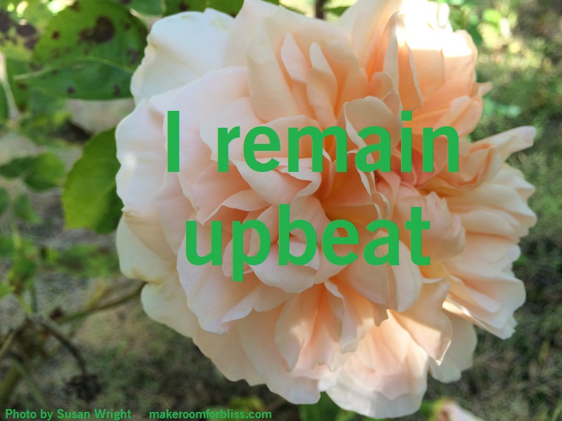 I remain upbeat, though I don’t always feel that way. I do the best I can, and I cut myself some slack when I act less than ideally, for I know I am a work in progress.